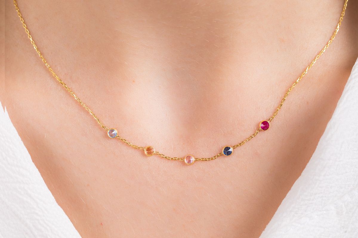 Family Birthstones Necklace Gold
